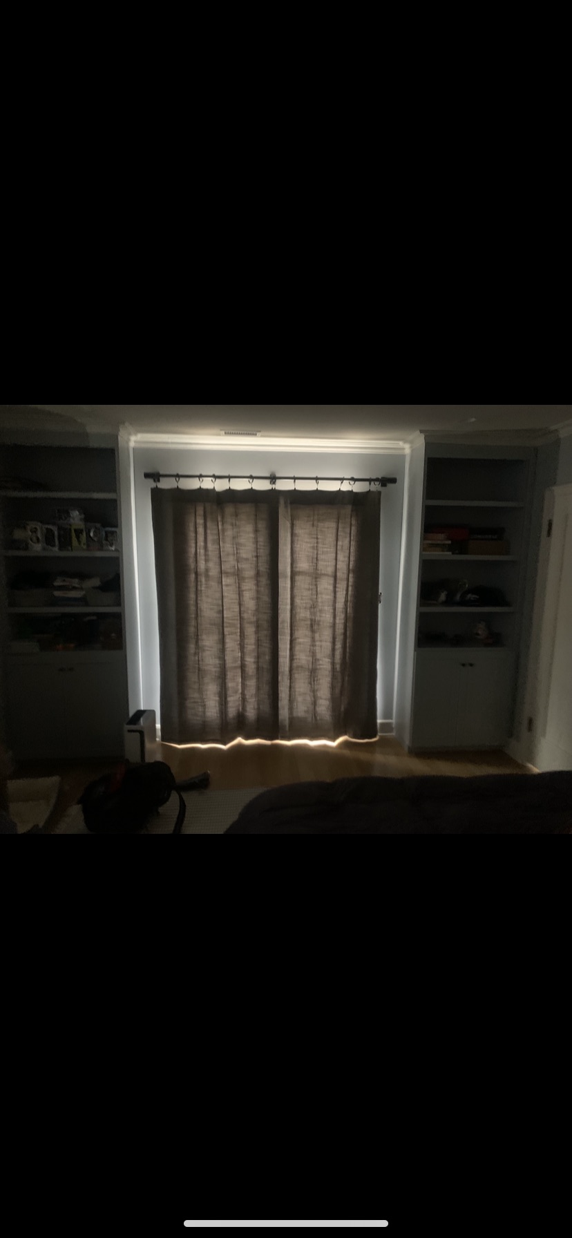 Heavy mirror hanging, floating shelves, gallery walls, curtains & blinds.